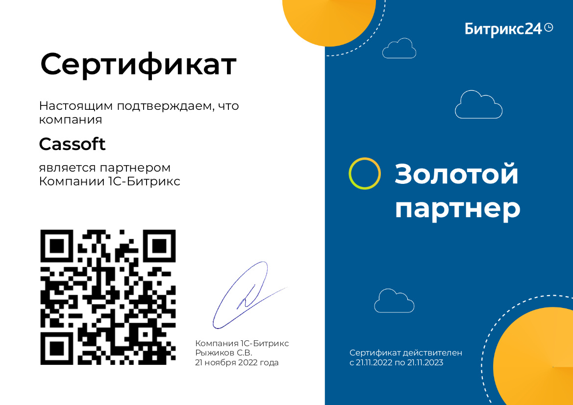 Мы являемся золотым партнером Битрикс24.